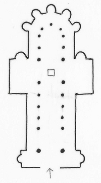 Von zentraler Bedeutung war natürlich die Kirche, die in zwei Etappen von 1892-1914 errichtet wurde. Der mächtige späthistoristische Kirchenbau wurde „stilrein“ als neoromanische Basilika mit einer Zweiturmfassade, einem Langhaus mit einem ausladenden Querhaus sowie einem Umgangschor mit einem Kapellenkranz geplant. Unter dem Chorbereich wurde eine große Krypta angelegt.